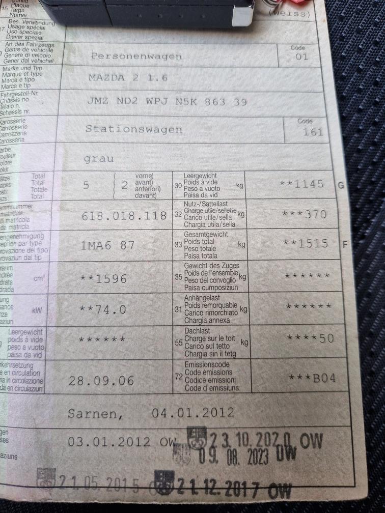 Mazda 2 aus 1.Hand Sehr gepflegter Zustand Leichter Rost an Radläufen hinten und an Türe vorne links innen am Falz siehe Fotos Leichte Kratzer vorhanden Verkauf ab Platz ohne Garantie und Gewährleistung. Nach Gebotsabgabe wird nicht mehr verhandelt. Kann Besichtig werden Abholung innert 5 Arbeitstagen Sommer und Winterräder