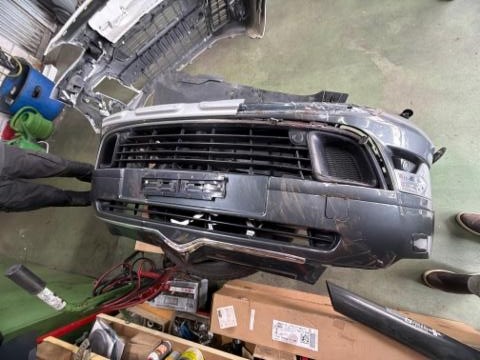 Front eingedrückt. Frontblech/Maskenblech eingedrückt.