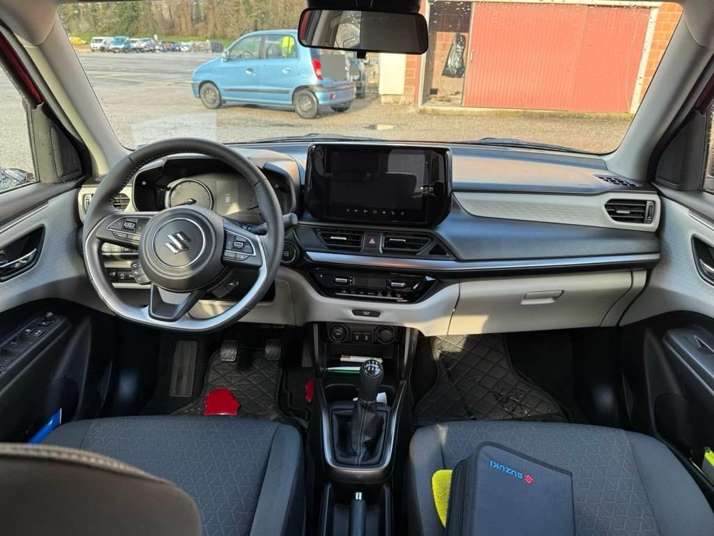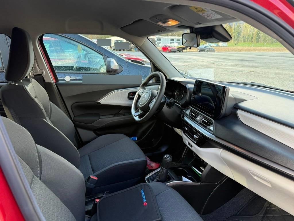 Elektrisch verstell- und heizbare Aussenspiegel, Licht: Lichtautomatik, Gurtstraffer und Gurtkraftbegrenzer auf allen Plätzen, Lackierung: Metallic-Lackierung Flame Orange Pearl Metallic, Wegfahrsperre elektronisch, Lenkrad: Lenkrad längs- und höhenverstellbar, Assist: Warnsystem für Müdigkeit und Aufmerksamkeit, Sitze: Sitzheizung vorne, Sitze: Fahrersitz höhenverstellbar, Getriebe: 5-Gang-Getriebe, Assist: Rückfahrkamera, ISOFIX-Kindersitzverankerung, Lenkrad: Lederlenkrad, Heckspoiler, Airbag: Vorhangairbags, Polster: Stoff-Ausstattung, Licht: LED Abblendlicht und Fernlicht, Licht: Nebelschlussleuchte, Assist: Intelligenter Geschwindigkeitsassistent (ISA), Media: USB-Anschluss für externe Audioquellen, Media: Suzuki Connect App (3 Jahre kostenlos), Räder: Leichtmetallfelgen 16J 185/55R16, Klima: Klimaautomatik mit Pollenfilter, Media: 9 Zoll Touchscreen-Multimediasystem mit Smartphone-Anbindung, Bluetooth und DAB+ und Navigation, Licht: Fernlicht-Assistent, Keyless Start (schlüsselloses Einsteigen und Starten), Licht: Guide-me-home Funktion, Sonnenblenden vorne mit Schminkspiegel (Fahrerseite), ESP mit Traktionskontrolle, Zentralverriegelung mit Fernbedienung, Assist: Spurleitassistent, 12 Volt-Steckdose, Elektrische Fensterheber vorne + hinten, Privacy Glass, Airbag: Airbag für Fahrer und Beifahrer (Beifahrerseite deaktivierbar), Sitze: Rücksitzlehne separat umklappbar (60/40), Assist: Fahrerüberwachungssystem (DMS), Dreipunkt-Sicherheitsgurte auf allen Plätzen, Assist: Spurhalteassistent, Sonnenblenden vorne mit Schminkspiegel (Beifahrerseite), Assist: Querverkehrswarner hinten, Assist: Verkehrszeichenerkennung, Räder: Reifendruck-Kontrollanzeige, LCD Multifunktionsfarbdisplay, Assist: Berganfahrhilfe, Media: 6 Lautsprecher, Airbag: Seitenairbags vorne, Assist: Spurwechselassistent, Aussenspiegel und Türgriffe in Wagenfarbe, Licht: LED-Tagfahrlicht, ABS mit elektronischer Bremskraftverteilung und Bremsassistent, Lenkrad: Bedientasten am Lenkrad für Audio und Telefon, Assist: eCall, Aussenspiegel mit integriertem Blinker, Bodenteppiche, Elektrisch einklappbare Aussenspiegel, Media: USB-Anschluss (1x USB-A + 1x USB-C), Assist: Adaptiver Tempomat, Start-/Stopp-Automatik, Assist: Parksensoren hinten (akustisch), Servolenkung, Assist: Notbremssystem mit Kollisionswarner
