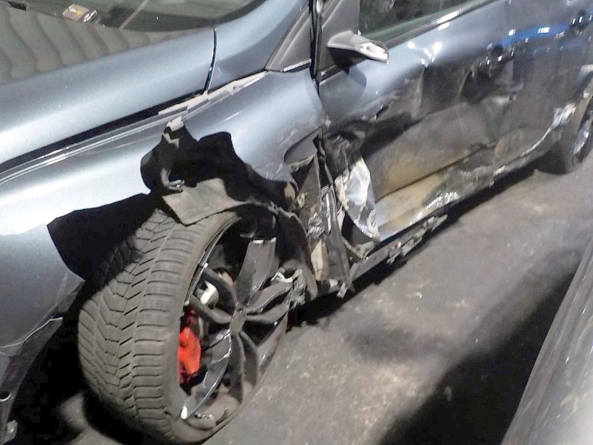 Airbag ausgelöst, Antrieb, Armaturenbrett, Diverse Anbauteile, Federbein vorne links, Front, Front links, Frontscheibe, Gurtstraffer ausgelöst, Kotflügel links, Lenkung, Motorhaube, Radaufhängung vorne links, Radhaus vorne links, Scheinwerfer links, Schweller links, Seitenwand links, Türe hinten links, Türe vorne links, Vorderachse