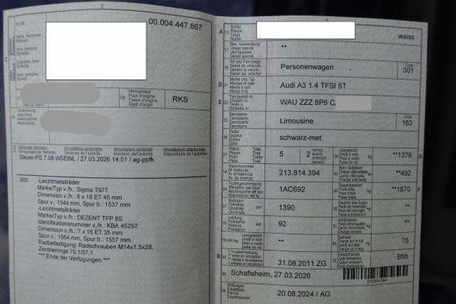 Fahrer-Informationssystem FIS Aussenspiegel elektrisch verstellbar und heizbar Radio Chorus Airbag Fahrer und Beifahrerseite Seitenairbag Fahrer und Beifahrerseite Zentralverriegelung mit Fernbedienung Elektronische Wegfahrsperre Geteilte Rücksitzlehne 1/3, 2/3 Lenksäule mit Höhen- und Längseinstellung Elektrische Fensterheber vorne ESP/ ASR/ EDS/ ABS mit EBV Seitliches Kopfairbagsystem SIDEGUARD Lenkrad 4-Speichen Aussenspiegel in Wagenfarbe Wärmeschutzverglasung Audi hill hold assist (Berganfahrassistent) Servotronic geschwindigkeitsabhängig Leichtmetallräder 16" Keine Gewähr auf die Angaben der Serienausstattungen
