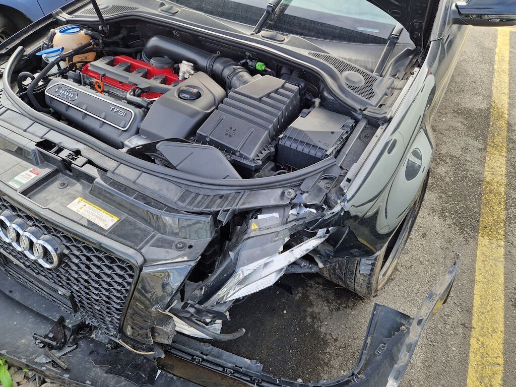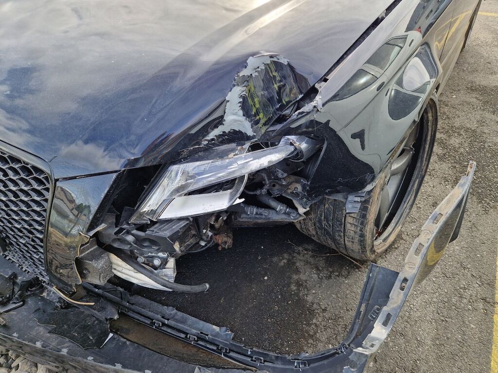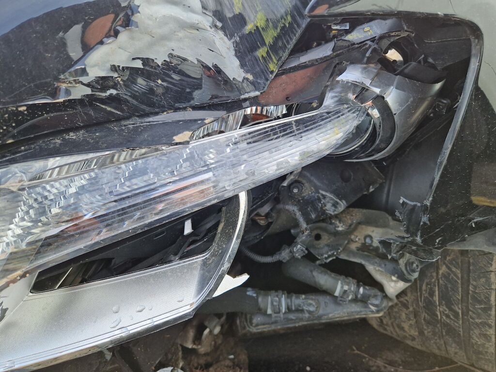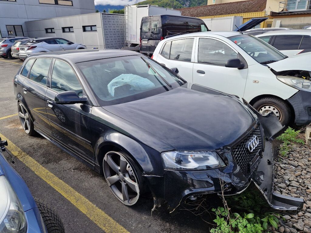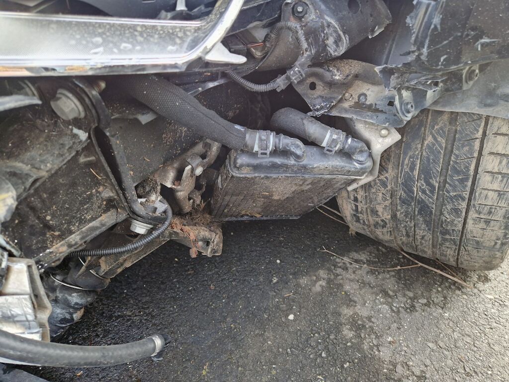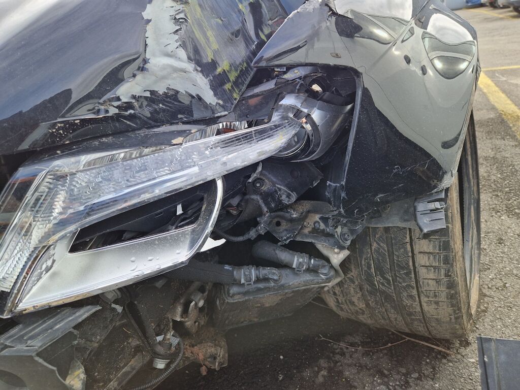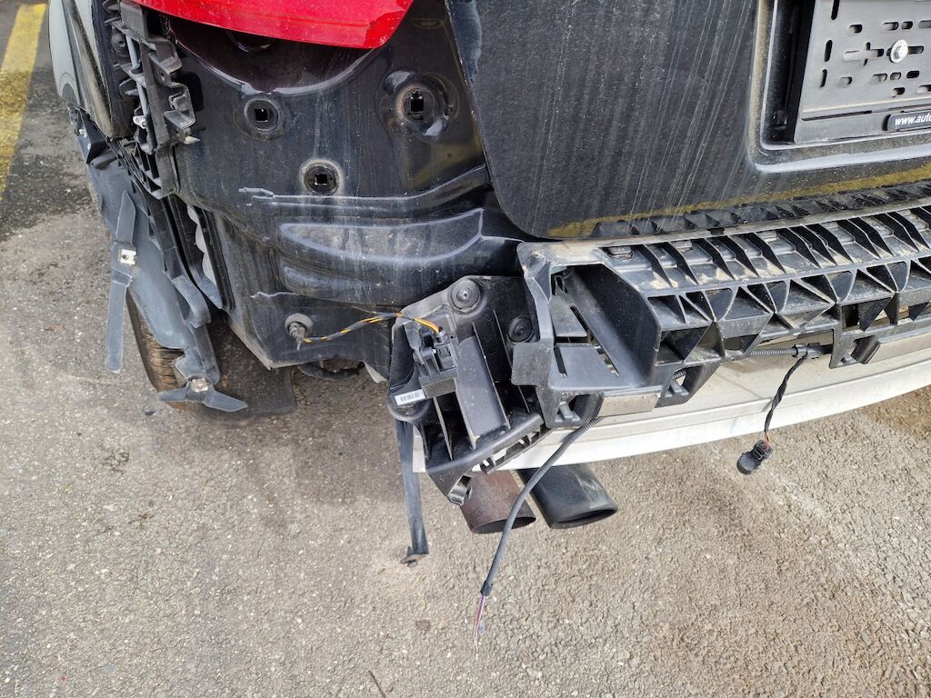 important choc: pare-choc avant, calandre, spoiler, phare gauche cassé, capot moteur enfoncé, aile avant gauche refoulée, mécanique avant gauche refoulée contre montant A , mécanique avant gauche à remplacer, direction à remplacer, joue d'aile gauche pliée, embout de longeron gauche plié, porte avant gauche marquée, aile avant droite pliée, jante et pneu avant droite endommagé, mécanique arrière gauche pliée, jante arrière droite pliée, pare-choc arrière arraché, air bag / passager activés, pare brise cassé, voir détail calcul dans le dossier Motor Getriebe Vorderachse Hinterachse Airbags ausgelöst: 4 Ja ( Abfallcode 16.01.04ak )