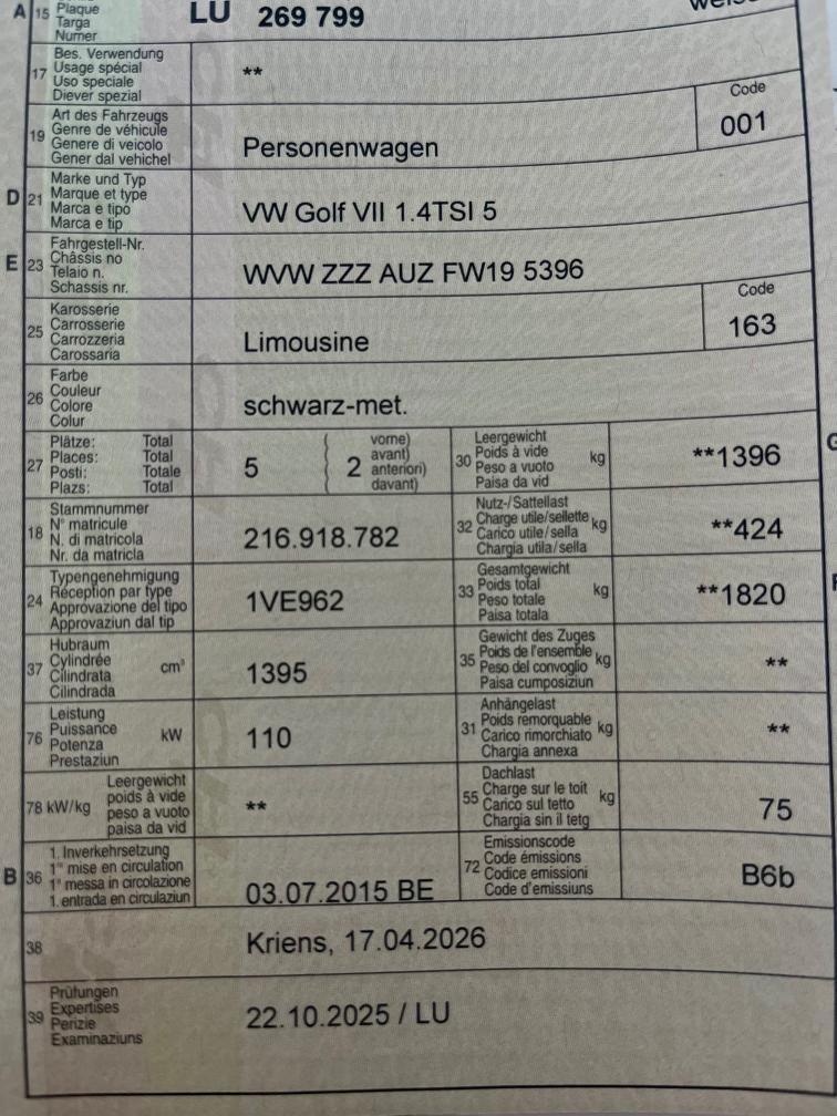 VW Golf VII 1.4TSI 5 Edition 40 ( MFK10.2025)