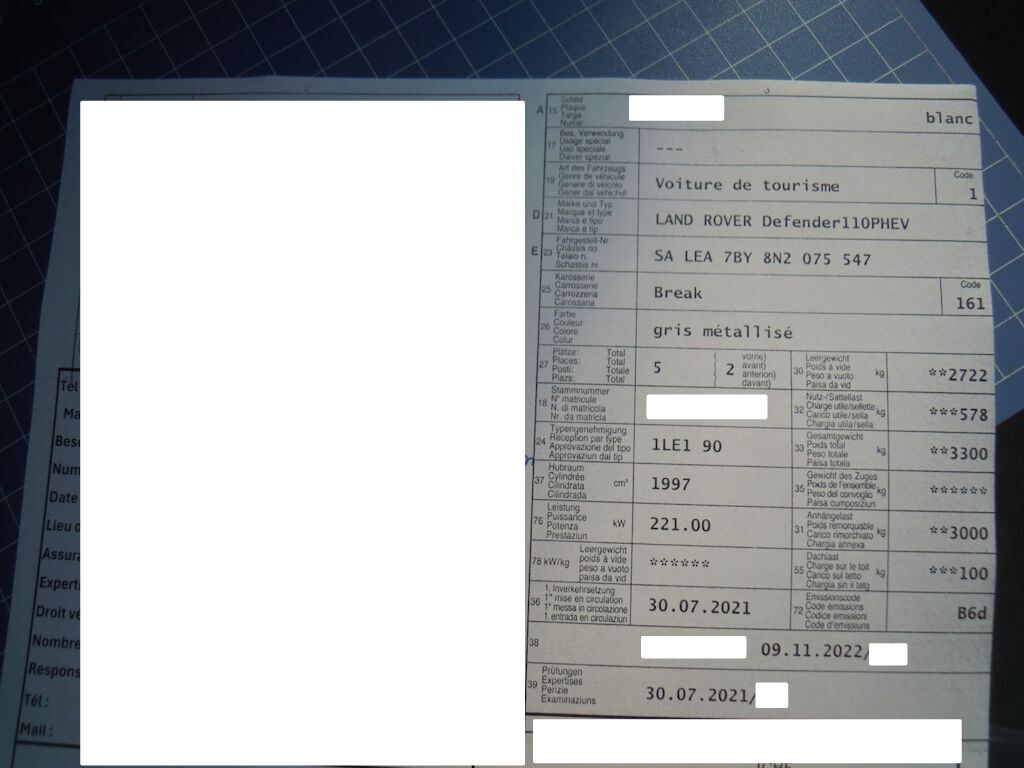 4 Roues été complètes avec mêmes jantes.Roule en électrique, pas d'affichage de défaut sur le système hybride.Le véhicule n'a pas pu être levé sur un lift.A part les revêtements, ne semble pas avoir de dommages conséquent au soubassement. Sous réserve.Ne semble pas avoir de dommages à la suspension avant. Sous réserve.2 clés.
