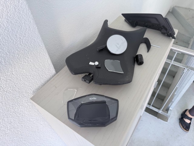 Rechte Seite beschädigt. Ist auf die rechte Seite gefallen. Verschalung oben rechts verkratzt. Verschalung oben rechts gebrochen. Verschalung unten rechts verkratzt. Verschalung hinten rechts verkratzt.