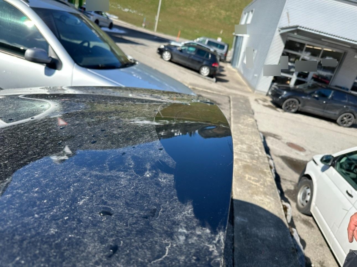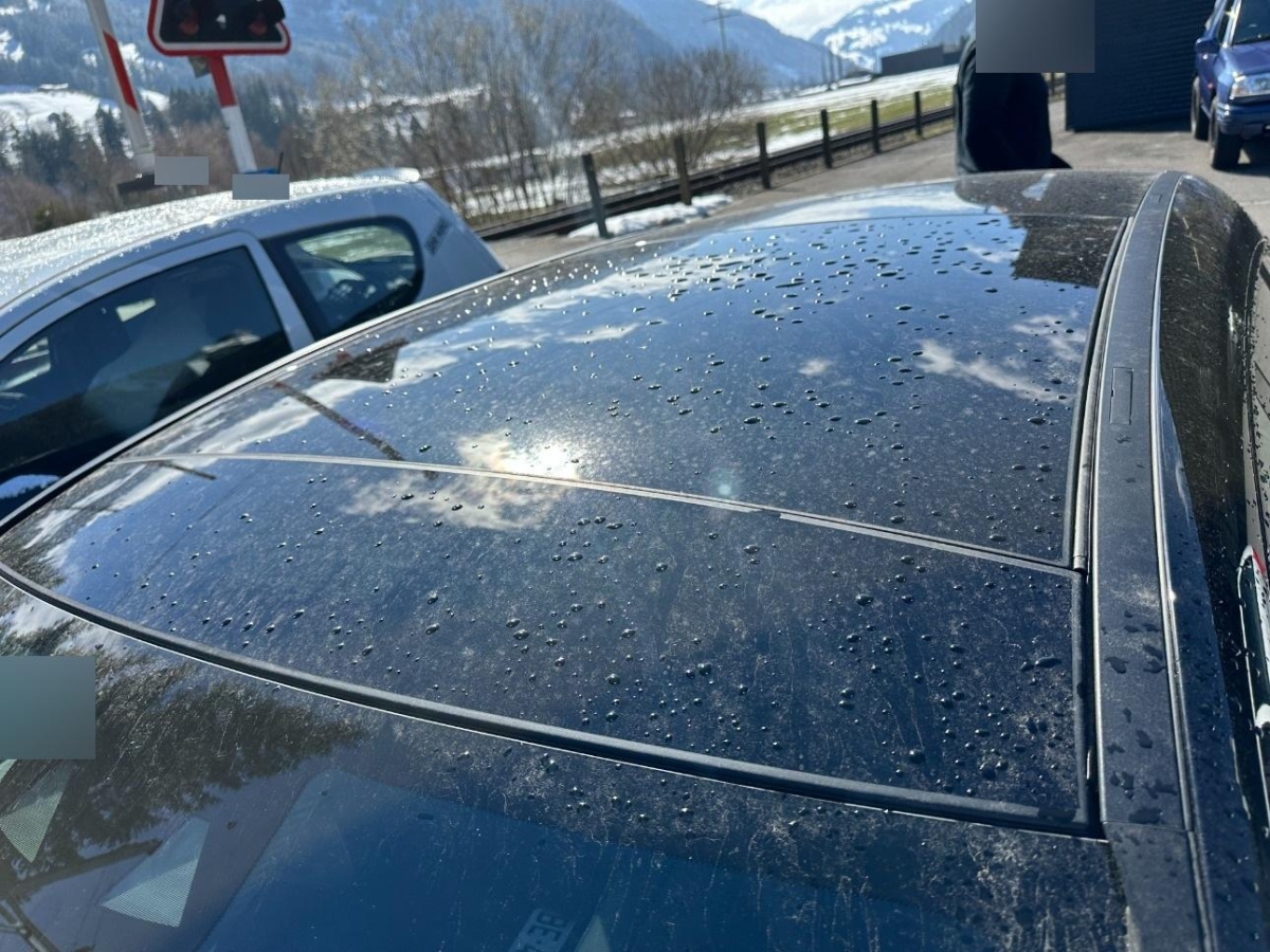 Das Fahrzeug hat rundum kleine Dellen, Beulen und Lackschäden, Diverse Gebrauchsspuren, Hagelschaden