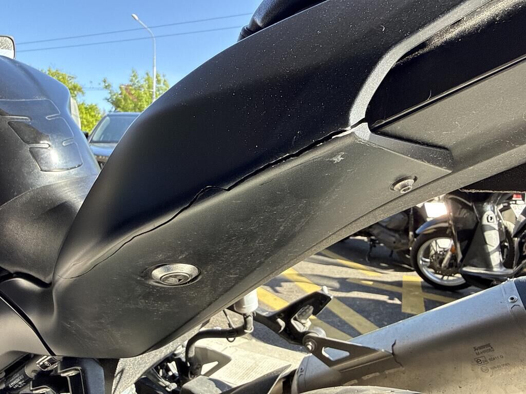 Divers carénages, demi- guidon droit avec rétro, levier, support cale-pied d, échappement, axe de roue av, rayés / cassés. Bras oscillant légèrement rayé. Cadre légèrement déformé. Motor Getriebe Vorderachse Hinterachse Airbags ausgelöst: 0 unbekannt ( Abfallcode 16.01.04ak )