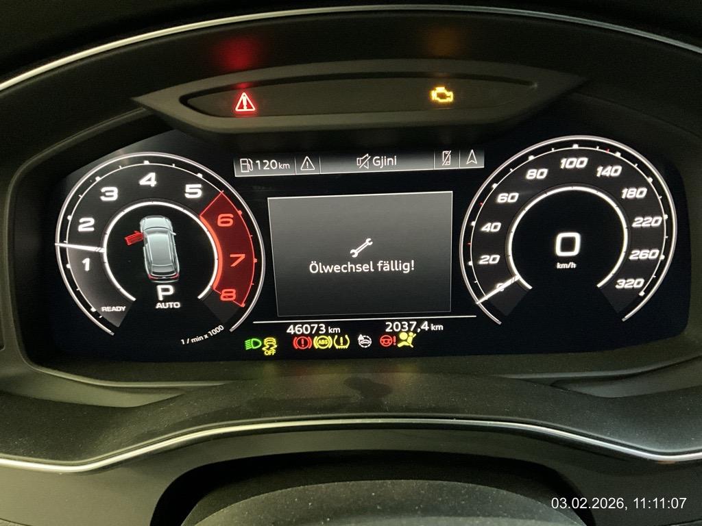 3-Punkt-Sicherheitsgurte auf allen Plätzen, Ablagenpaket, Abschliessbare Radschrauben, Airbag: Airbag Fahrer und Beifahrer, Akustikglas, Alcantara-/Leder-Ausstattung, Allradantrieb permanent, Aluminium-Applikationen, Ambientebeleuchtung, Antiblockiersystem (ABS), Antriebsschlupfregelung (ASR), Assist: Einparkhilfe plus, Assist: Spurverlassenswarnung, Audi Phone Box und Audi connect, Audi connect Notruf, Audi drive select, Audi hold assist, Audi pre sense front, Audi virtual cockpit, Aussenspiegel in Alu matt, Aussenspiegel rechts und links beheizt, elektrisch verstell-/ und einklappbar mit Memory - automatisch abblendend, Beide Make up-Spiegel beleuchtet, Blinker in Aussenspiegel, Bordwerkzeug, Cupholder, Dachhimmel schwarz, Dachreling Alu-Look matt, Dachspoiler, Diebstahlwarnanlage, Einstiegsschienen, Elektrisch verstellbares Lenkrad, Elektrische Heckklappe, Elektronische Differentialsperre (EDS), Elektronisches Stabilitäts-Programm (ESP), Fahrer-Informationssystem mit Farbdisplay, Garantie: 2 Jahre ohne Kilometerbegrenzung (ab 1. Inv.), Getriebe: 8-Stufen-Automat sequentiell, HD Matrix LED Scheinwerfer mit Audi Laserlicht, Handschuhfach, ISOFIX Kindersitzvorrichtung, Innenspiegel automatisch abblendbar, Interieurelemente in Kunstleder, Katalysator geregelt, Kindersicherung hinten, Kindersitzvorrichtung ISOFIX mit Deaktivierungsschalter für Beifahrer- Airbag, Klima: Klimatisierungsautomatik 4- Zonen, Klima: Pollenfilter (Staubfilter), Leichtmetallräder im 10-Speichen-Design 21J, Lenkrad-Wippschaltung (Paddles), Lenkrad: Progressivlenkung, Licht: LED Heckleuchten, Licht: Licht- und Regensensor, Licht: Tagfahrlicht, Media: Audi Smartphone Interface, Media: Audi connect Navigation &, Media: Audi music interface, Media: Digitaler Radioempfang (DAB), Media: MMI Navigationssystem Plus, Mittelarmlehne vorn in Kunstleder schwarz mit Kontrastnaht in Rot, Multifunktions-Sportlenkrad in Leder, unten abgeflacht, Nichtraucherausführung, Pedale und Fuss-Stütze in Aluminium, Räder: Reifendruck-Kontrollanzeige, Rücksitzlehne geteilt abklappbar, Scheinwerfer-Waschanlage, Seitenairbag für Fahrer und Beifahrer, Seitenaufprall-Schutzsystem, Seitenschutz-Zierleisten, Servotronic, Sicherheitslenksäule, Sitze: Elektrisch einstellbare Lendenwirbelstütze für Vordersitze, Sitze: Sportsitze vorne, Sitze: Vordersitze heizbar, Sonnenblende links, Sonnenblende rechts, Soundsystem, Start-/Stop-Knopf, Stopp-/Start-System, Tempomat mit Geschwindigkeitsbegrenzer, Teppichfussmatten vorne und hinten, Tire Fit (Reifendichtmittel) anstelle Faltrad, Vordersitze elektrisch verstellbar, Fahrersitz mit Memory-Funktion, Wendematte für Gepäckraumboden, Window-Kopfairbag für Fahrer und Beifahrer, Wärmeschutzverglasung