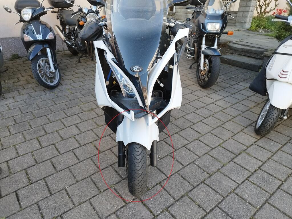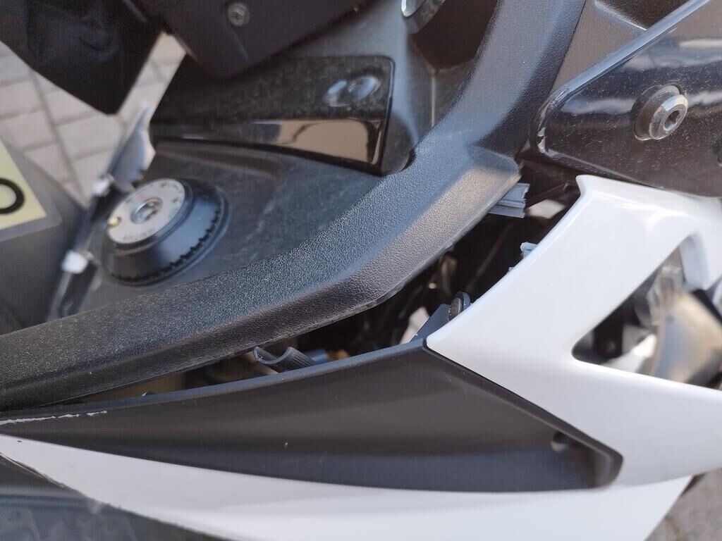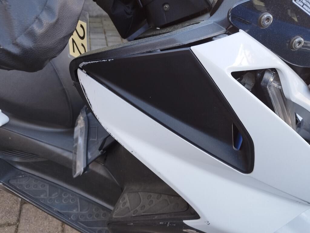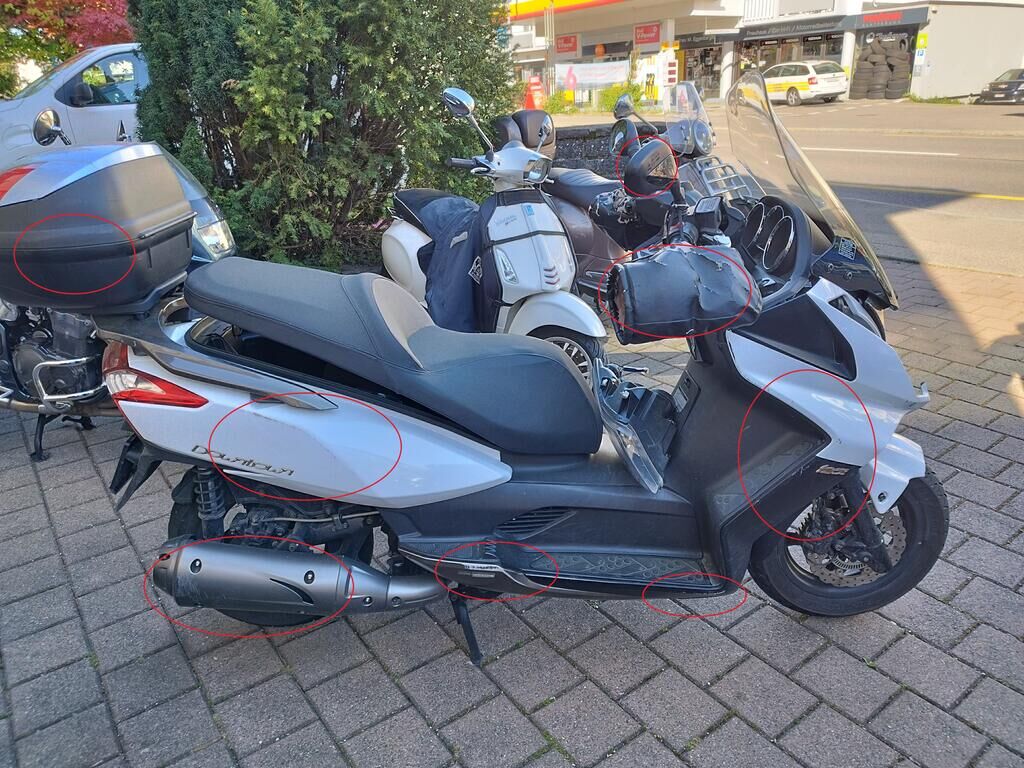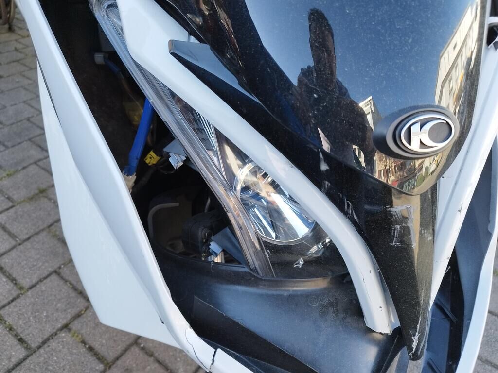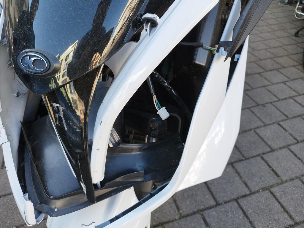Das Rad vorne steht schräg, die Frontgabeln sind gestaucht, der Kotflügel vorne ist gerissen, alle Frontverkleidungen sind gerissen, beide Scheinwerfer sind gerissen, die Frontscheibe ist gerissen, die Verkleidung vorne rechts hat Kratzspuren, die Verkleidungen rechts haben Kratzspuren, der Griff rechts hat Kratzspuren, der Bremsgriff rechts hat Kratzspuren, der Spiegel rechts hat Kratzspuren, die Verkleidung hinten rechts hat Kratzspuren, die Auspuffverkleidung hat Kratzspuren, das Topcase hat Kratzspuren. Weitere Details zum Schadenfall gehen aus den beiliegenden Fotos hervor. Motor Getriebe Vorderachse Hinterachse Airbags ausgelöst: 0 unbekannt ( Abfallcode 16.01.04ak )