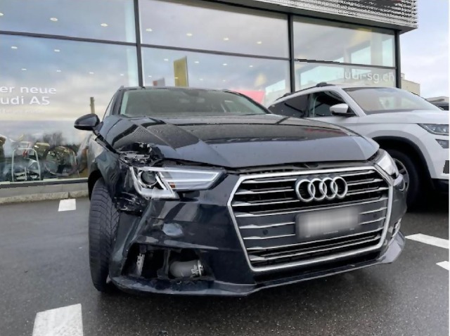 Beschreibung der Schäden: Stossstange v.r gerissen und diverse Anbauteile beschädigt, Motorhaube eingedrückt und Fussgängerschutzsystem ausgelöst, Scheinwerfer v.r gebrochen, Schlossträger v.r gebrochen, Kotflügel v.r stark eingedrückt, Verlängerung Radhaus v.r geknickt, Luftfilterkasten gebrochen, Aufhängung v.r verformt/Felge v.r zerkratzt, Motor läuft nicht (laut Tester Motorsteuergerät/Airbagsteuergerät blockiert wegen dem ausgelösten Fussgängerschutzsystem)