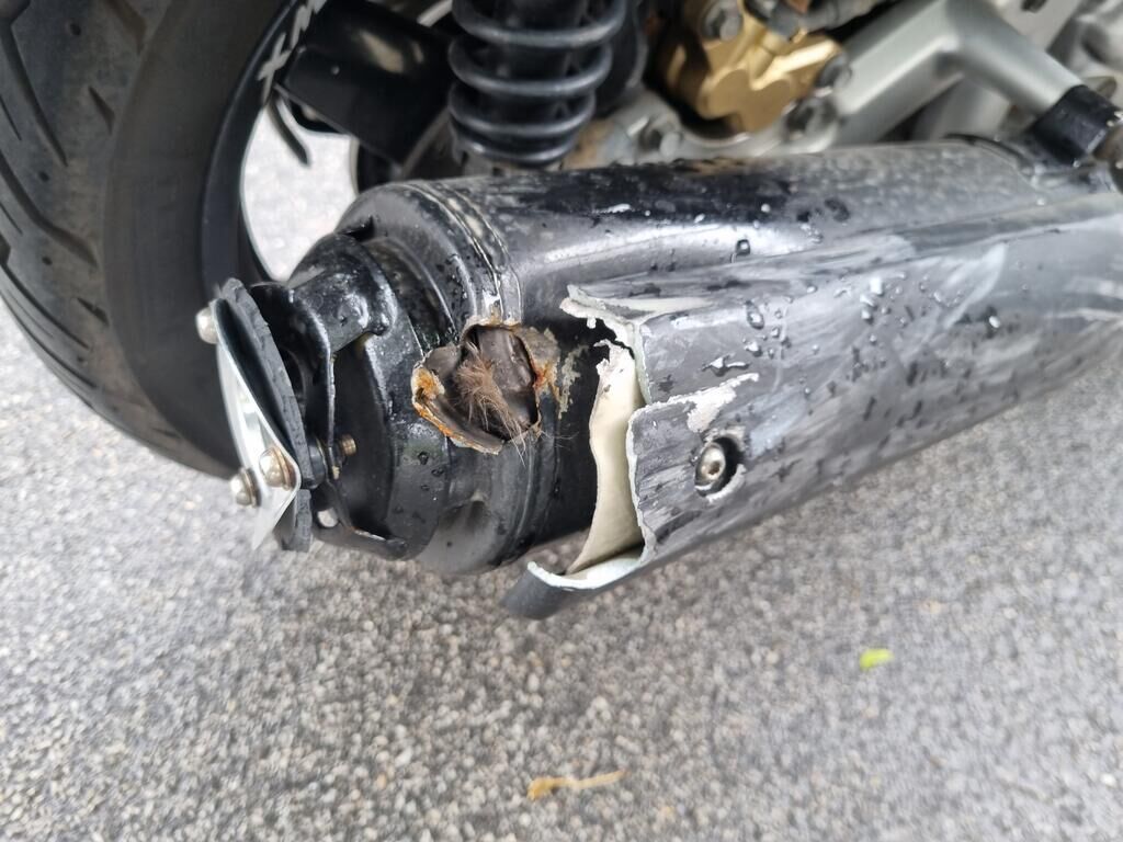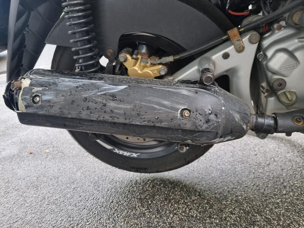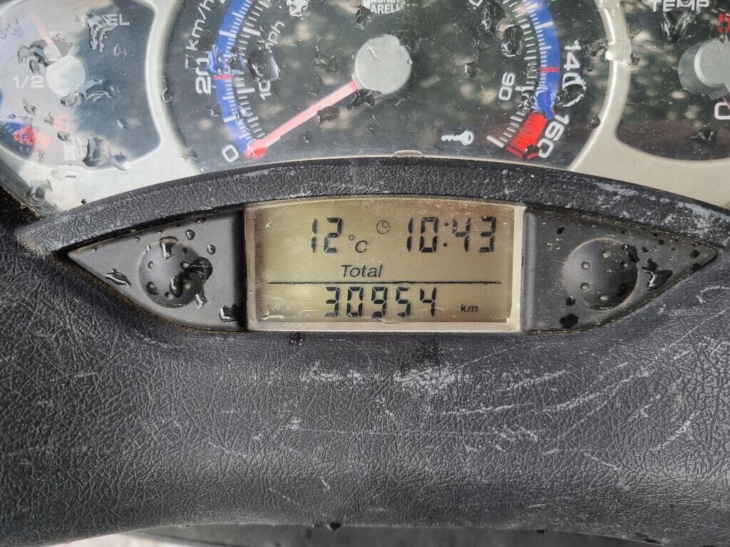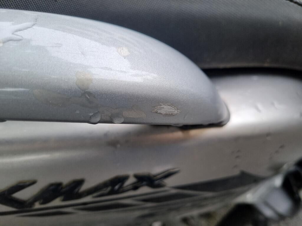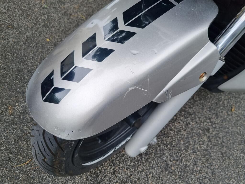 Pare-boue avant, levier frein, rétroviseur et poids de guidon droit griffés, carénages droit griffés, échappement fortement enfoncé, cale pied et support cale pied droit pliés, risque sur guidon et fourche avant. Motor Getriebe Vorderachse Hinterachse Airbags ausgelöst: 0 unbekannt ( Abfallcode 16.01.04ak )