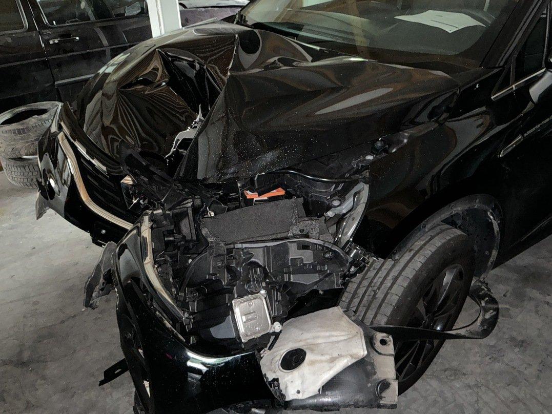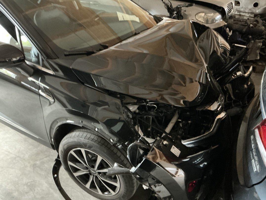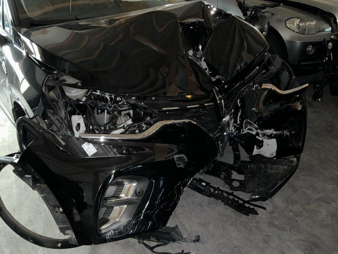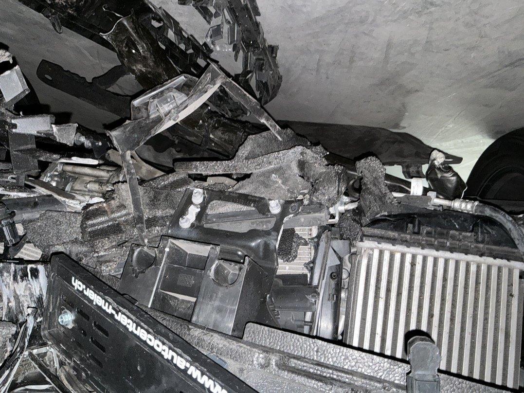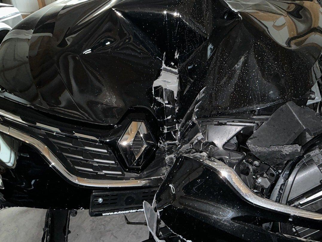 Choc avant Bloc avant enfoncé Phares avant gauche et droit cassés Radiateurs moteur, climatisation et intercooler enfoncés Traverse avant pliée Berceau plié Risque sur le moteur Suspensions avant gauche et droit pliées