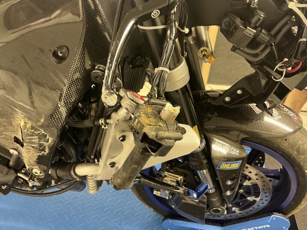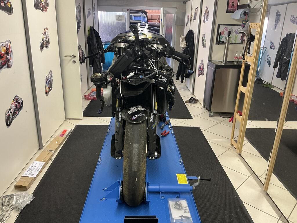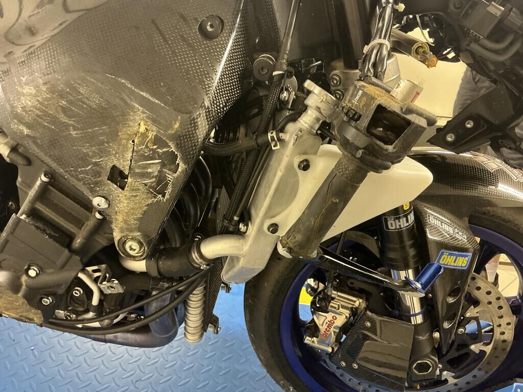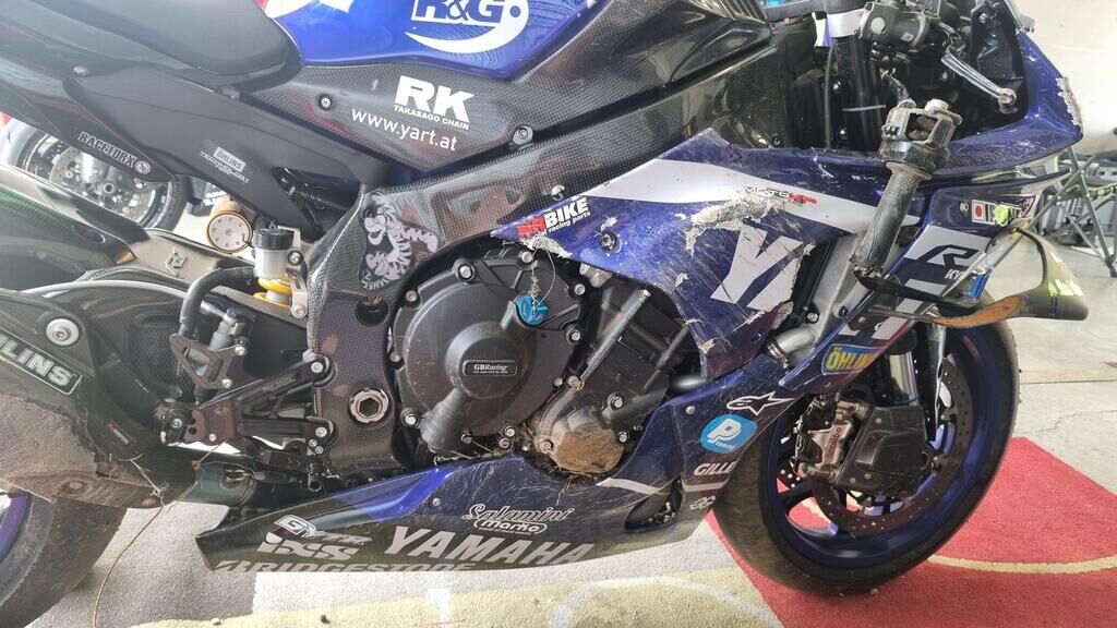 Fourche avant pliée Cadre abîmé Divers carénages cassés Réservoir plié Risque sur le moteur Radiateur plié Motor Getriebe Vorderachse Hinterachse Airbags ausgelöst: 0 Nein ( Abfallcode 16.01.04ak )
