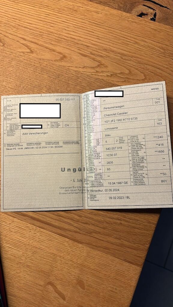 Chevrolet Cavallier Z24 zum aufbereiten Mängel: - Motorlagerblöcke müssen ersetzt werden - Bremsen müssen instandgesetzt werden - Oelverlust VDD - Antriebswellenmanchette defekt - Querlenker hinten müssen ersetzt werden - Tacho Anzeige fällt teilweise aus - Weitere Mängel möglich Positives - Motor und Getriebe i.O - Neue Reifen (Anfang 2025) - Innenraum guter Zustand - original Radio vorhanden - 2.8l V6 Benziner - Seltenes Coupe letzte MFK 09.02.2023 Motor Getriebe Vorderachse Hinterachse Airbags ausgelöst: 0 unbekannt ( Abfallcode 16.01.04ak )