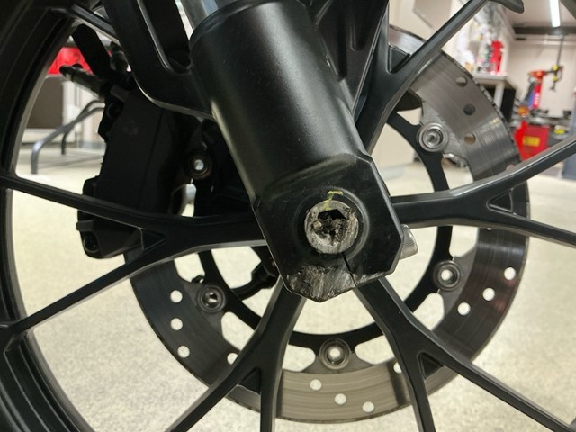 Vorderrad beschädigt. Gabel beschädigt. Lenker verbogen.
