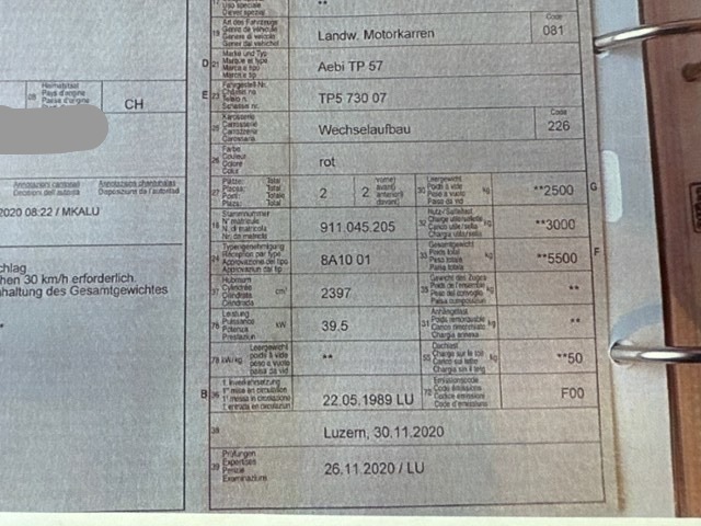 Fahrzeug muss transportiert werden (Höhe und Breite beachten). Fahrzeug ist rollbar.