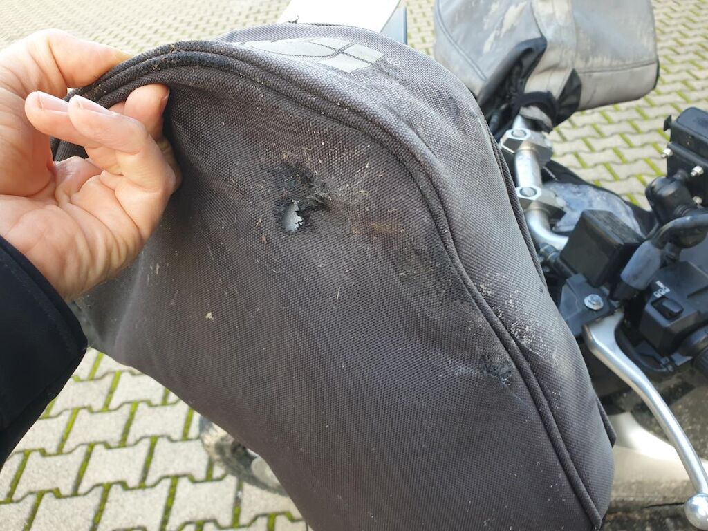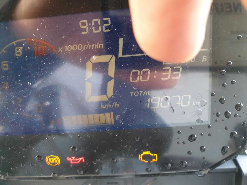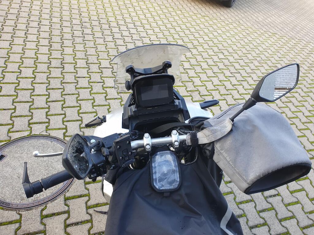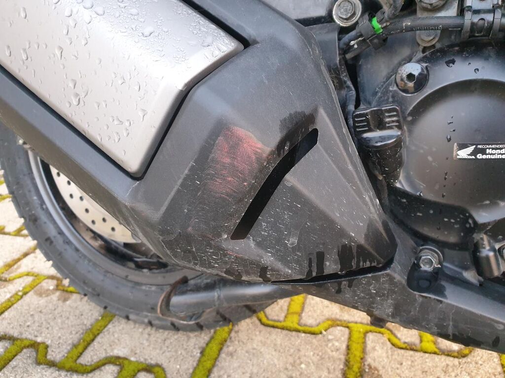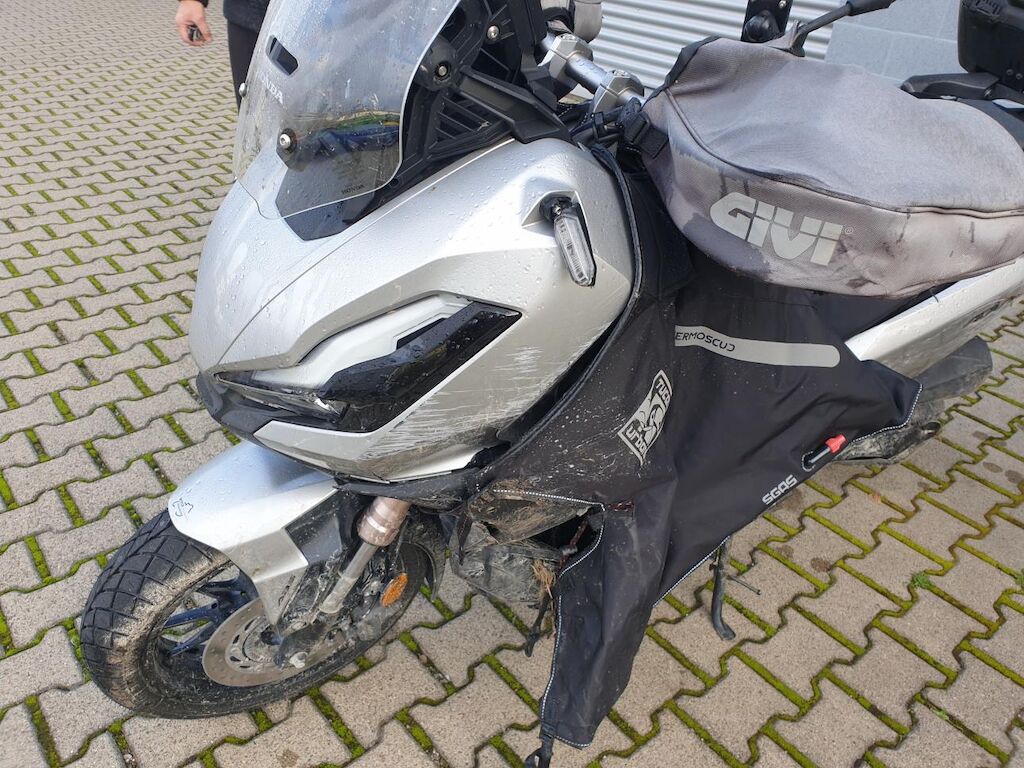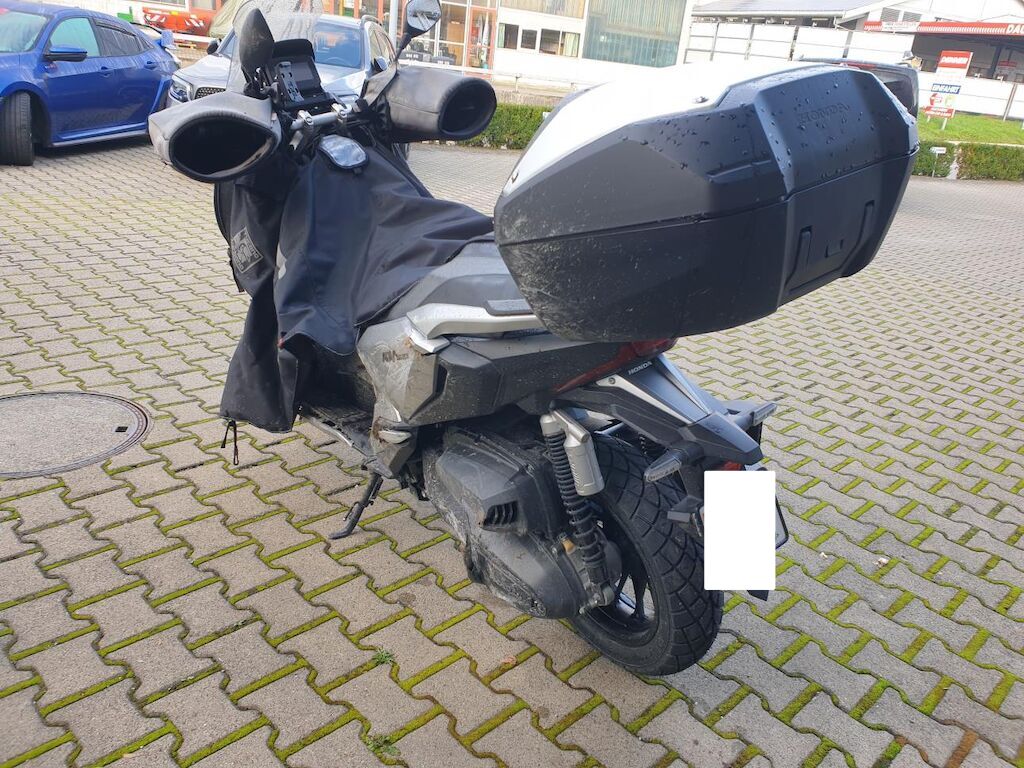 Seitenschaden links: Verkleidungen, Lenker mit Anbauteilen, Wärmeschutz, Scheinwerfer, Blinker, Schutzblech, Fussrasten, Heckbügel, Rahmen unten, Getriebedeckel, Ständer, Luftfilter und Topcase beschädigt. Risiko Gabel und Rahmen. Motor Getriebe Vorderachse Hinterachse Airbags ausgelöst: 0 unbekannt ( Abfallcode 16.01.04ak )