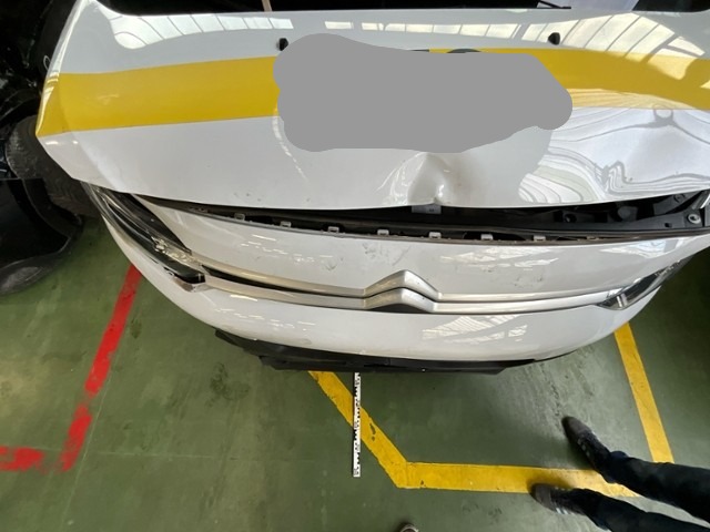 Front eingedrückt. Frontblech/Maskenblech eingedrückt. Längsträger vorne rechts und links gestaucht.