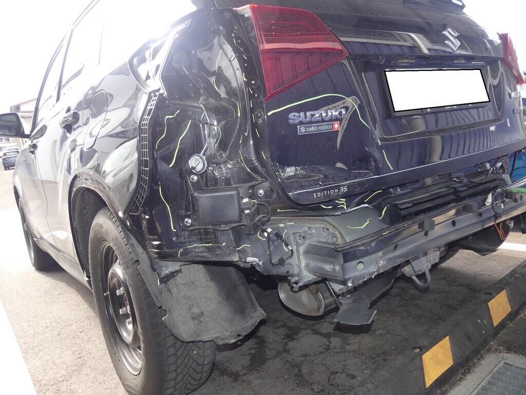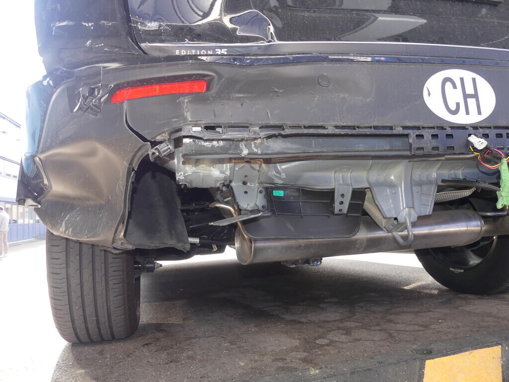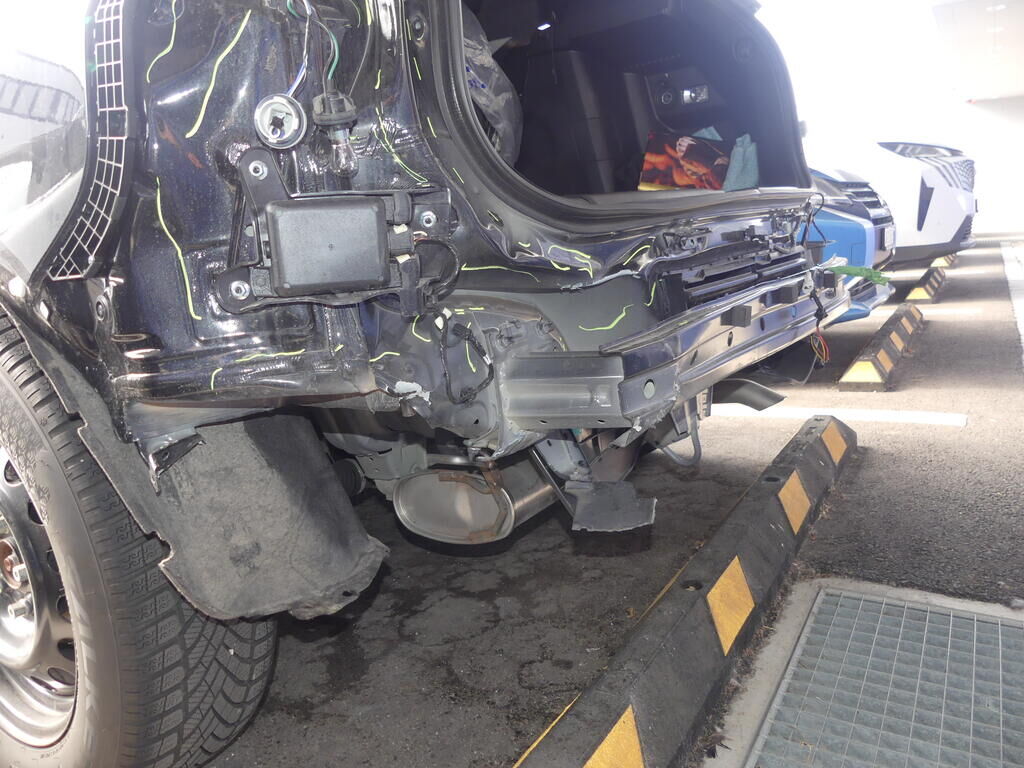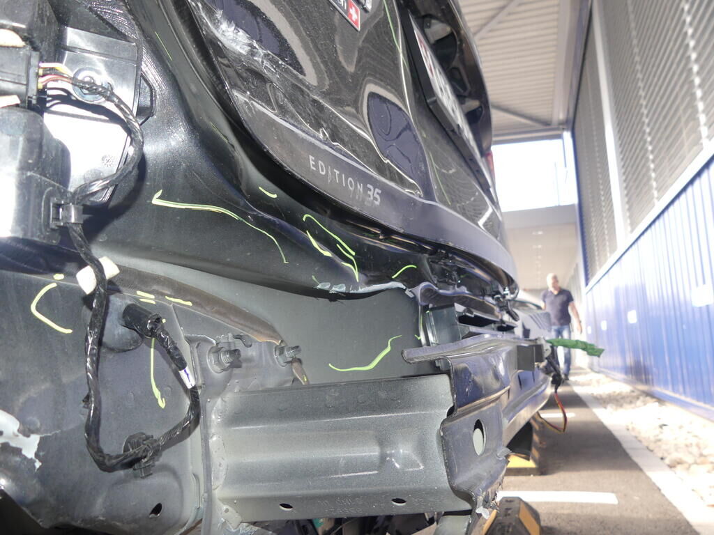 -Seitenwand, Heckblech, Heckklappe, Stossstangenträger, Kofferraumboden, Längsträger links deformiert -Stossstangenverkleidung, Rückstrahler, Heckleuchte aussen und innen links, Radlaufleiste, Halter, PDC-Sensor, Kabelbaum, Innenverkleidungen gebrochen. -Cover und Halterungen Hochvoltbatterie deformiert -Hochvoltbatterie Risiko Motor Getriebe Vorderachse Hinterachse Airbags ausgelöst: 0 unbekannt ( Abfallcode 16.01.04ak )
