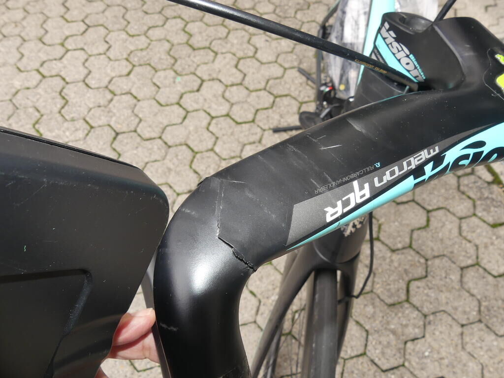 Carbon-Lenker gebrochen, Bremshebel beschädigt. Risiko: Gabel Motor Getriebe Vorderachse Hinterachse Airbags ausgelöst: 0 unbekannt ( Abfallcode 16.01.04ak )