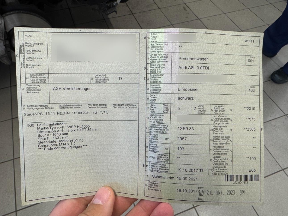 Multifunktions-Lederlenkrad 4-Speichen mit Schaltwippen, Digital Uhr, Licht: LED-Tagfahrlicht, Innenspiegel automatisch abblendbar, Räder: Reifendruck-Kontrollanzeige, Türgriffe aussen in Wagenfarbe, Media: MMI Radio plus, Geruchssensor, Anfahrassistent, Stossstangen und Aussenspiegel in Wagenfarbe, Licht: LED Scheinwerfer, Elektrische Fensterheber vorne + hinten, Audi drive select, Leseleuchten vorne, Getönte Scheiben, Partikelfilter und Oxydationskatalysator, Elektronisches Stabilitäts-Programm (ESP), DVD-Player, Licht: Drittes Bremslicht, 3-Punkt-Sicherheitsgurte auf allen Plätzen, Elektronische Differentialsperre (EDS), Klima: Pollenfilter (Staubfilter), Sonnenschutzrollos für Heckscheibe und hintere Türscheiben elektrisch, Airbag: Seitenairbags vorne und hinten, Servotronic, Scheibenwischer vorne mit Intervall, Getriebe: 8-Stufen-Automat sequentiell, Bremsenergie-Rückgewinnung, Start/Stop-Funktion, Ausstiegsleuchten in den Türen, Fahrlichtautomatik, Armlehne vorne mit Ablagefach, Wegfahrsperre elektronisch, Antiblockiersystem (ABS), Einstiegsleisten Carbon Camouflage matt, Mittelarmlehne hinten, Holzapplikationen Nussbaum, Kartentaschen an den Rückenlehnen, Warndreieck, 3 Kopfstützen hinten, Armlehne für Fahrer- und Beifahrersitz, Klima: Klimatisierungsautomatik, Höhenverstellbare Gurten vorne, Gurtstraffer vorne und hinten, Cupholder vorne und hinten, Adaptive air suspension: elektronisch geregelte Luftfederung, Start-/Stop-Knopf, Licht: LED Heckleuchten, Aktive Kopfstützen, Nebelscheinwerfer, Elektronische Parkbremse, Vordersitze elektrisch verstellbar mit Memory, Elektrisch verstellbares Lenkrad, Leseleuchten hinten, Regensensor für Scheibenwischer vorne, Assist: Einparkhilfe plus, Innenlicht-Abschaltverzögerung, Airbag: Window-Kopfairbags, Leuchtweitenregulierung automatisch, Garantie: 2 Jahre ohne Kilometerbegrenzung (ab 1. Inv.), LED Innenlichtpaket, Schutzleisten in Wagenfarbe, Allradantrieb permanent, Sitze: Sitzheizung vorne und hinten, Tageskilometerzähler, Heckscheibenheizung, Gepäckraumklappe mit automatischer Öffnung, Valcona Leder-Ausstattung, Media: Digitaler Radioempfang (DAB), Aussentemperaturanzeige, Bremsbelag-Verschleissanzeige, Lichtwarnsummer, Radwechselwerkzeug, Audi pre sense basic, Airbag: Airbag Fahrer und Beifahrer, Licht: Licht- und Regensensor, Alu-Räder 8Jx17 im 6-Arm-Design, Mittelarmlehne vorn in Kunstleder schwarz mit Kontrastnaht in Rot, ISOFIX Kindersitzvorrichtung, Erweiterte Aluminium-Optik, Teppichfussmatten vorne und hinten, Zentralverriegelung mit Fernbedienung, Antriebsschlupfregelung (ASR), Applikationen schwarz glänzend, Ablagen in den Türen, Beide Make up-Spiegel beleuchtet, Schalt- / Wählhebel in Leder, Räder: Reifenreparatur-Set (Tire Fit), Adaptives Bremslicht, Wärmeschutzverglasung, Media: Audi Sound System, Abschliessbare Radschrauben, Assist: Bremsassistent (BAS), Drehzahlmesser, Geschwindigkeitsregler, MMI basic, Licht: Coming-home-Funktion, Licht: Nebelschlussleuchte, Fahrer-Informationssystem mit Farbdisplay, Aussenspiegel rechts und links beheizt, elektrisch verstell- / und einklappbar, Valcona - Leder-Ausstattung, Diebstahlwarnanlage mit Abschleppschutz, Lackierung: Uni-Lackierung, Elektrisches Glasschiebe- / Hebedach, Wagenheber, Aschenbecher und Zigarettenanzünder