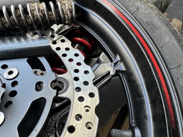 Vorderrad beschädigt. Gabel beschädigt. Lenker verbogen.