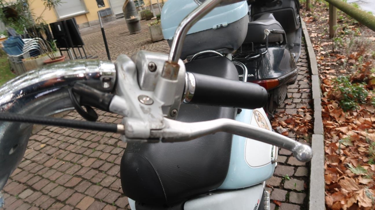 Antrieb, Armaturen, Auspufftopf, Diverse Anbauteile, Getriebe, Lenker, Rad hinten, Rad vorne, Rahmen, Rücklicht, Scheinwerfer, Schwinge, Verschalungen links