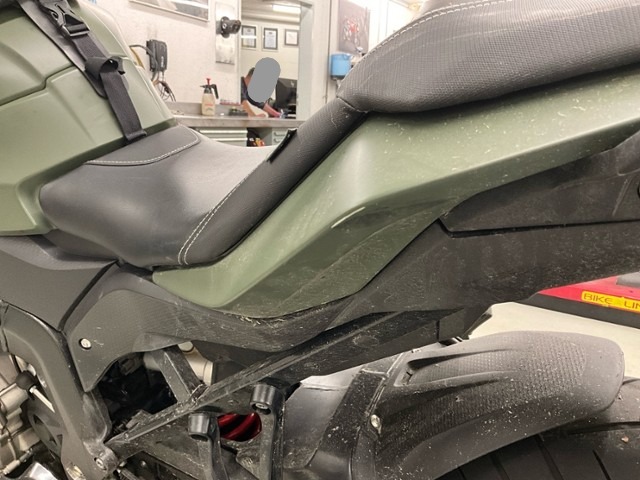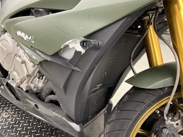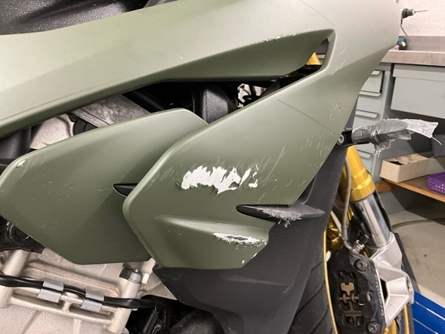 Rechte Seite beschädigt. Ist auf die rechte Seite gefallen. Verschalung oben rechts verkratzt. Verschalung unten rechts verkratzt. Verschalung hinten rechts verkratzt.