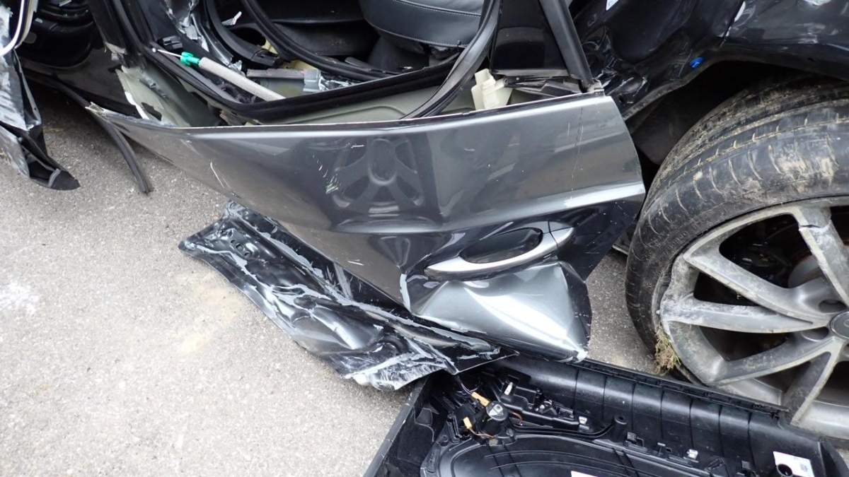 Coque complet, pare-brise, toit panoramique, hayon, portes, essieu arrière et avant, groupe de refroidissement, conduits, risque sur boite de vitesse et moteur, airbags et ceintures, boitiers, tableau de bord etc.... / Attention kilométrage estimé, aucun permis de circulation présenté