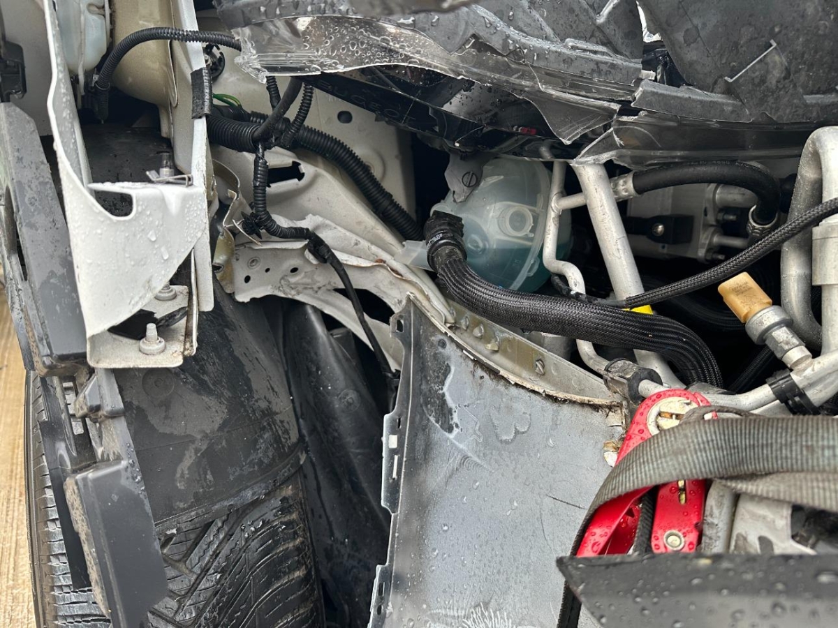 A-Säule, Achsträger, Airbag ausgelöst, Antriebswelle, Diverse Anbauteile, Federbein vorne rechts, Front, Front rechts, Gurtstraffer ausgelöst, Interieur, Kotflügel links, Kotflügel rechts, Kühler, Kühlgitter, Lenkung, Längsträger vorne rechts, Motorhaube, Motorlampe leuchtet, Querträger, Rad vorne rechts, Radaufhängung vorne rechts, Radhaus vorne rechts, Scheinwerfer links, Scheinwerfer rechts, Schlossträger, Stossstange hinten, Türe vorne rechts, Vorderachse