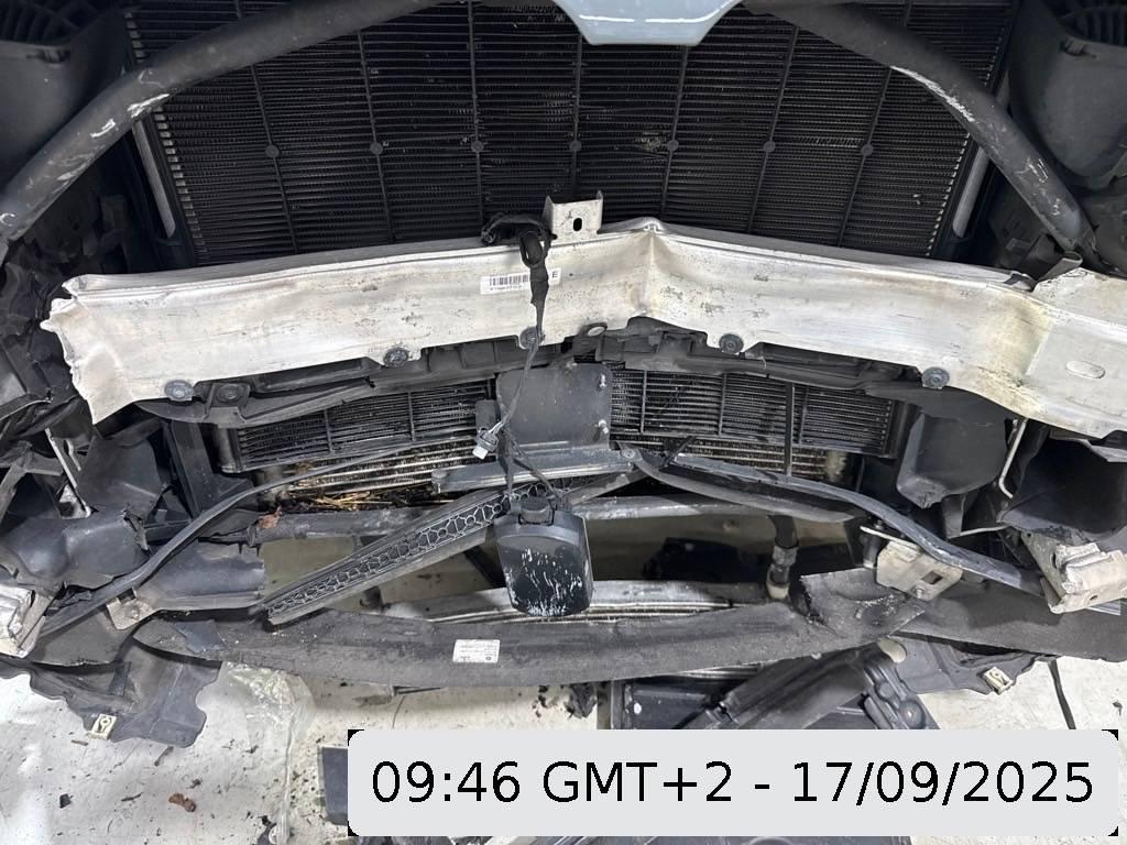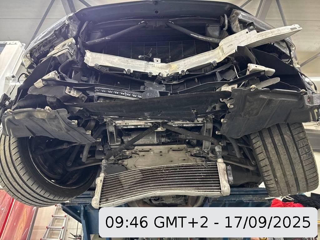 Antrieb, Antriebswelle, Federbein vorne links, Federbein vorne rechts, Front, Hinterachse, Kabelstrang, Klimakühler, Kotflügel links, Kotflügel rechts, Kühler, Kühlgitter, Ladeluftkühler, Lenkung, Längsträger vorne links, Längsträger vorne rechts, Motorhaube, Rad hinten links, Rad hinten rechts, Rad vorne links, Rad vorne rechts, Radaufhängung hinten links, Radaufhängung hinten rechts, Radaufhängung vorne links, Radaufhängung vorne rechts, Scheinwerfer links, Scheinwerfer rechts, Schlossträger, Stosstange vorne, Vorderachse