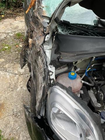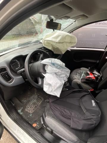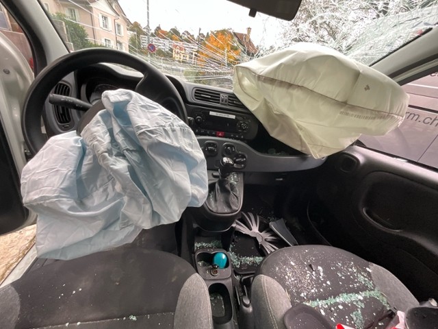 Windschutzscheibe ist gerissen. Türscheibe vorne rechts ist zerbrochen / beschädigt.