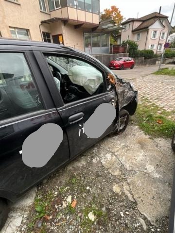 Rechte Seite beschädigt. Anstoss rechts im Bereich der A-Säule. Anstoss rechts im Bereich der B-Säule.