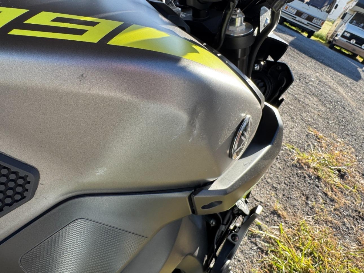 Diverse Gebrauchsspuren, Gabelholm, Kupplungsgehäuse, Motor und Getriebe mit Risiko, konnten nicht geprüft werden, Rahmen mit Risiko, Schutzblech vorne, Tank