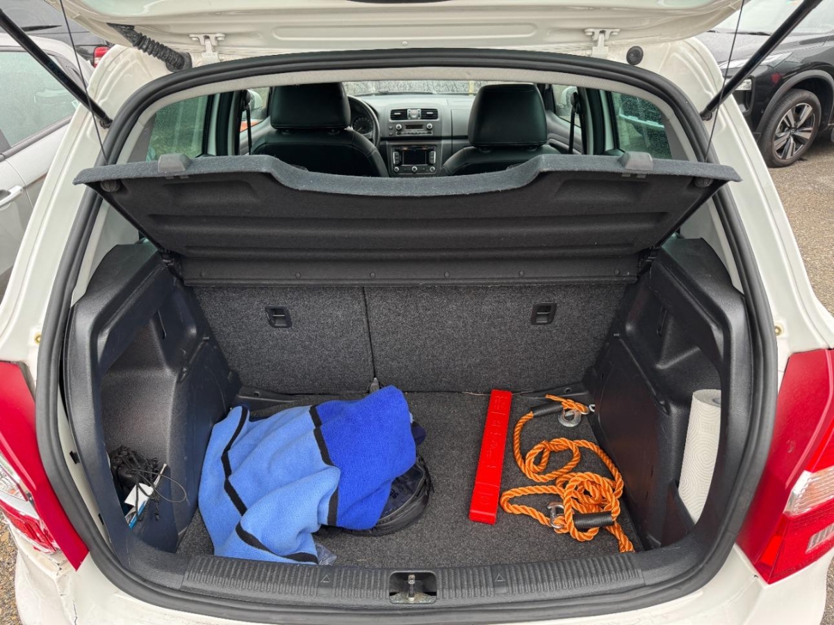 4 Speichen-Lederlenkrad, Zentralverriegelung mit Fernbedienung, Heckscheibenheizung, Lackierung: Uni-Lackierung, Teppichfussmatten vorne und hinten, Cupholder vorne, Befestigungsösen im Laderaum, Polster: Stoff-Ausstattung, Scheibenwischer vorne mit Intervall, Klimatisierungsautomatik, Airbag: Seitenairbags, Park Distance Control hinten, Heckscheiben-Wisch-/Waschanlage, Antiblockiersystem (ABS), Laderaumabdeckung, Wassertemperaturanzeige, Staufach unter den Vordersitzen, Haltegriffe 2 vorne und 2 hinten, Getönte Scheiben, Make up-Spiegel rechts, Tagfahrlicht, Bottleholder, Radiovorbereitung, Antenne, Entstörung und 8 LS, Antriebsschlupfregelung (ASR), Leichtmetallfelgen 6,5Jx16 (ATRIA), Maxi-DOT Display, Räder: Pannenset, Airbag: Airbag Fahrer und Beifahrer, Nebelschlussleuchte, Leseleuchten hinten, Elektronisches Stabilitäts-Programm (ESP), Gurtstraffer vorne, Radio SWING mit CD-Player, MP3, Leseleuchten vorne, Brillenablage, Licht: Halogenscheinwerfer, Sequentielles 7-Gang-Getriebe DSG mit Automatikfunktion, Steckdose, Lichtwarnsummer, Audio-Anschluss in der Mittelkonsole, Assist: Tempomat, Lederhandbremshebel, Tageskilometerzähler, 3-Punkt-Sicherheitsgurte auf allen Plätzen, Sitze: Mittelarmlehne vorne, Drittes Bremslicht, Sitze: Rücksitzlehne geteilt abklappbar, 2 Innenleuchten, Assist: Berganfahrassistent, Airbag: Airbag Beifahrer deaktivierbar, Stossstangen und Aussenspiegel in Wagenfarbe, Wegfahrsperre elektronisch, Servolenkung, Türgriffe aussen in Wagenfarbe, Aschenbecher und Zigarettenanzünder, Frontscheibe mit Color-Band, Sitze: Fahrersitz höhenverstellbar, Seitenschutz-Zierleisten, Räder: Reifendruck-Kontrollanzeige, Katalysator geregelt, Mittelkonsole mit Ablagefach, Lenkrad längs- und höhenverstellbar, Elektrische Fensterheber vorne + hinten, Drehzahlmesser, Beifahrersitz höhenverstellbar, Sitze: Vordersitze heizbar, Digital Uhr, ISOFIX Kindersitzvorrichtung, Nebelscheinwerfer mit Abbiegelicht, Aussenspiegel rechts und links beheizbar und elektrisch verstellbar, Airbag: Window-Kopfairbags, Ablagefach im Kofferraum