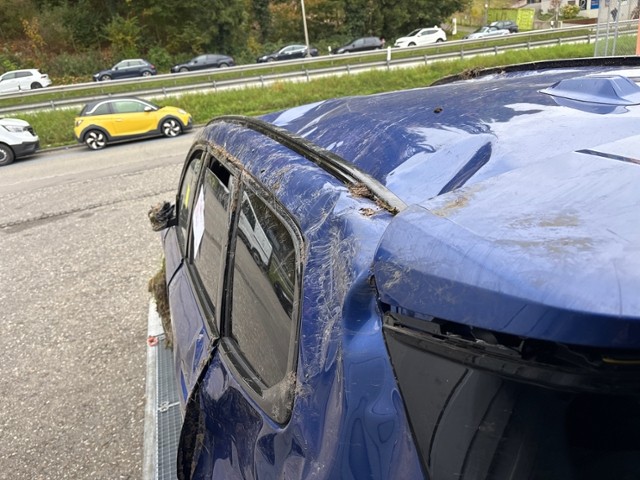 Linke Seite beschädigt. Anstoss links im Bereich der A-Säule. Anstoss links im Bereich der B-Säule. Anstoss links im Bereich der C-Säule. Anstoss links im Bereich der D-Säule.