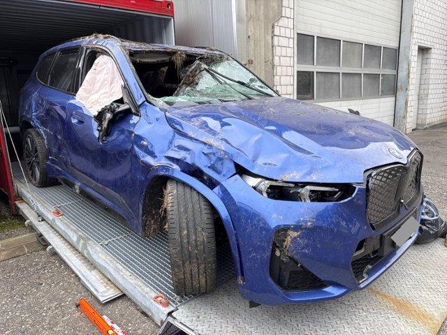 Fahrzeug muss transportiert werden (Höhe und Breite beachten). Fahrzeug ist NICHT fahrbar. Fahrzeug ist NICHT rollbar. Fahrzeug lag auf der Seite. Fahrzeug hat sich mehrmals überschlagen. Motor startet nicht, Ursache unbekannt. Batterie leer.