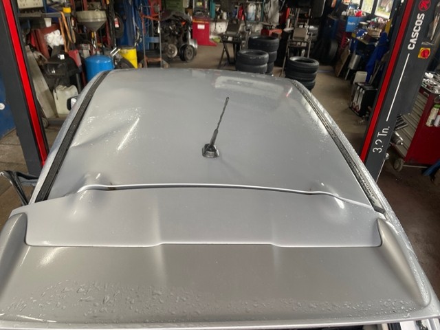 Dach eingedrückt. Dach ist hinten links eingedrückt.
