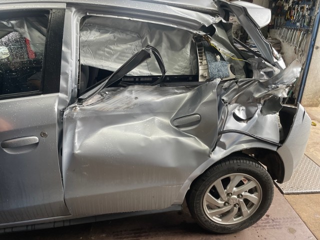 Heckscheibe ist zerbrochen / beschädigt. Türscheibe hinten links ist zerbrochen / beschädigt.