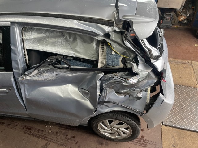 Hinterachse ist beschädigt. Motoraufhängung/Aggregateträger ist beschädigt.
