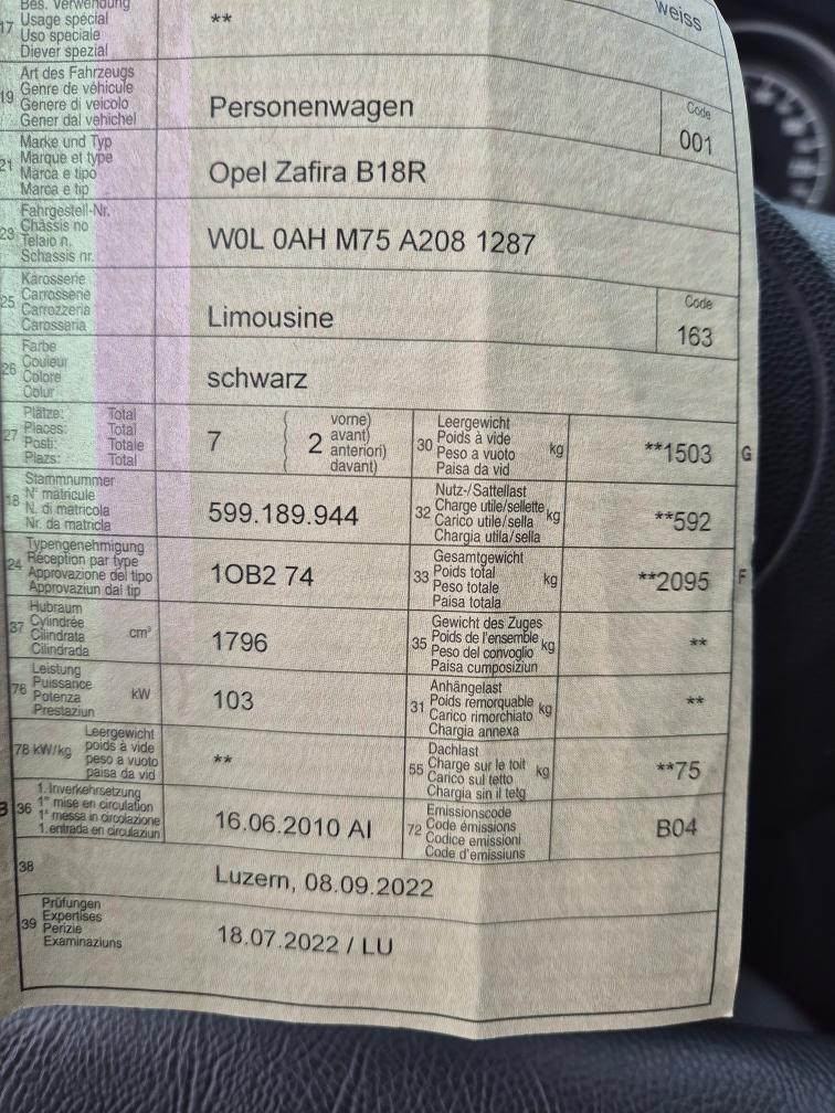 OPEL Zafira B18R