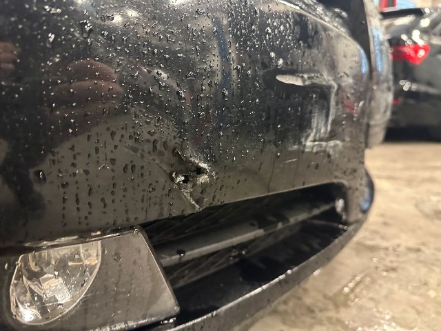 Front eingedrückt. Frontblech/Maskenblech eingedrückt. Fahrzeugvorbau verschoben.