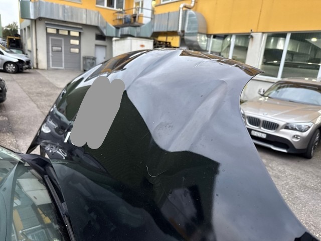 Front eingedrückt. Frontblech/Maskenblech eingedrückt.