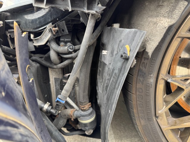 Vorderachse ist beschädigt. Aufhängungsteile vorne links beschädigt. Risiko Vorderachse. Lenkgetriebe ist beschädigt. Risiko Lenkung. Motoraufhängung/Aggregateträger ist beschädigt.