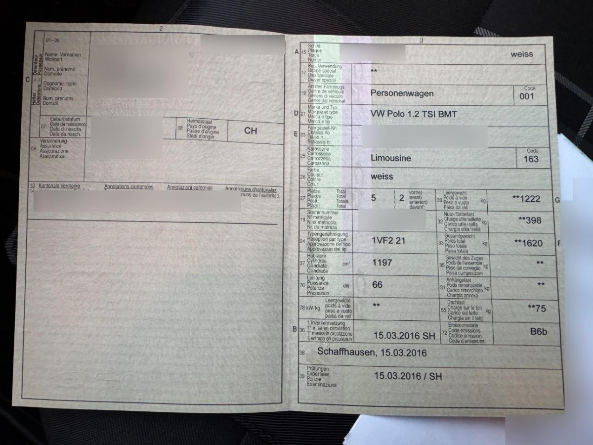Nebelscheinwerfer mit integrierter Abbiegelichtfunktion, Multifunktionsanzeige Plus, Cupholder vorne, Scheibenwischer vorne mit Intervall, Höhenverstellbare Gurten vorne, Schaltknauf und Handbremshebel in Leder, Gangempfehlung, Sitze: Vordersitze mit höheneinstellung, Aussenspiegel und Türgriffe in Wagenfarbe, Stopp-/Start-System, Lenkrad: Lenkrad längs- und höhenverstellbar, Airbag: Window-Kopfairbags, Klima: Pollenfilter (Staubfilter), Blinker in Aussenspiegel, Leseleuchten vorne, Laderaumabdeckung, Wegfahrsperre elektronisch, Polster: Stoff-Ausstattung, Make up-Spiegel rechts, Leseleuchten hinten, Licht: Drittes Bremslicht, 3 Kopfstützen hinten, Assist: Berganfahrassistent, Airbag: Airbag Beifahrer deaktivierbar, Sitze: Rücksitzlehne geteilt abklappbar, Innenlicht-Abschaltverzögerung, Make up-Spiegel links, Antiblockiersystem (ABS), 2 Schlüssel mit Fernbedienung, Kofferraumbeleuchtung, Kartentaschen an den Rückenlehnen, Bremsassistent (BAS), Umfeldbeobachtung 'Front-Assist' mit City-Notbremsfunktion, Stossstangen in Wagenfarbe, Räder: Abschliessbare Radschrauben, Gurtstraffer vorne, Easy-Entry, Lichtwarnsummer, Airbag: Airbag Fahrer und Beifahrer, Antriebsschlupfregelung (ASR), Räder: Reifenkontrollanzeige, Zentralverriegelung mit Fernbedienung, Drehzahlmesser, Beide Make up-Spiegel beleuchtet, Sequentielles 7-Gang-Getriebe DSG mit Automatikfunktion, Wärmeschutzverglasung, Leder-Multifunktionslenkrad im 3-Speichen-Design, Applikationen Chrom, ISOFIX Kindersitzvorrichtung, Ablagen in den Türen, Heckscheiben-Wisch-/Waschanlage mit, Komfortblinker, Tagfahrlicht, Licht: Nebelschlussleuchte, Bremsenergie-Rückgewinnung, Tageskilometerzähler, Seitenairbag für Fahrer und Beifahrer, 3-Punkt-Sicherheitsgurte auf allen Plätzen, Handschuhfach klimatisierbar, Elektronisches Stabilitäts-Programm ESP, Color-Paket, 4 Leichtmetallfelgen 15J mit Pneu, Aussenspiegel rechts und links beheizt, elektrisch verstell- / und einklappbar, Einstiegsschienen vorne, Elektrische Fensterheber vorne + hinten, Katalysator geregelt, Klima: Klimatisierungsautomatik Climatronic, Mittelarmlehne vorne, ParkPilot, Park Distance Control vorne und hinten, Radiosystem Composition Media, Reifenreparatur-Set (Tire Fit), Tempomat, Teppichfussmatten vorne und hinten, Vordersitze beheizbar