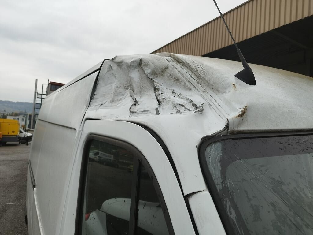 Das Dach vorne rechts ist deformiert, die Schiebetüre rechts ist deformiert, die Seitenwand hinten rechts hat eine Delle. Weitere Details zum Schadenfall gehen aus den beiliegenden Fotos hervor. Motor Getriebe Vorderachse Hinterachse Airbags ausgelöst: 0 unbekannt ( Abfallcode 16.01.04ak )