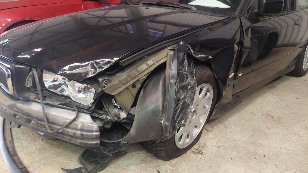 Haube und Kotflügel li deformiert, Stossstange vorne Scheinwerfer li und div Anbauteile gebrochen, Radaufhängung v.l. verbogen, Fahrer und Seitenairbag re ausgelöst Motor Getriebe Vorderachse Hinterachse Airbags ausgelöst: 0 unbekannt ( Abfallcode 16.01.04ak )