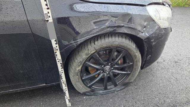 Front eingedrückt. Kotflügel vorne rechts eingedrückt.