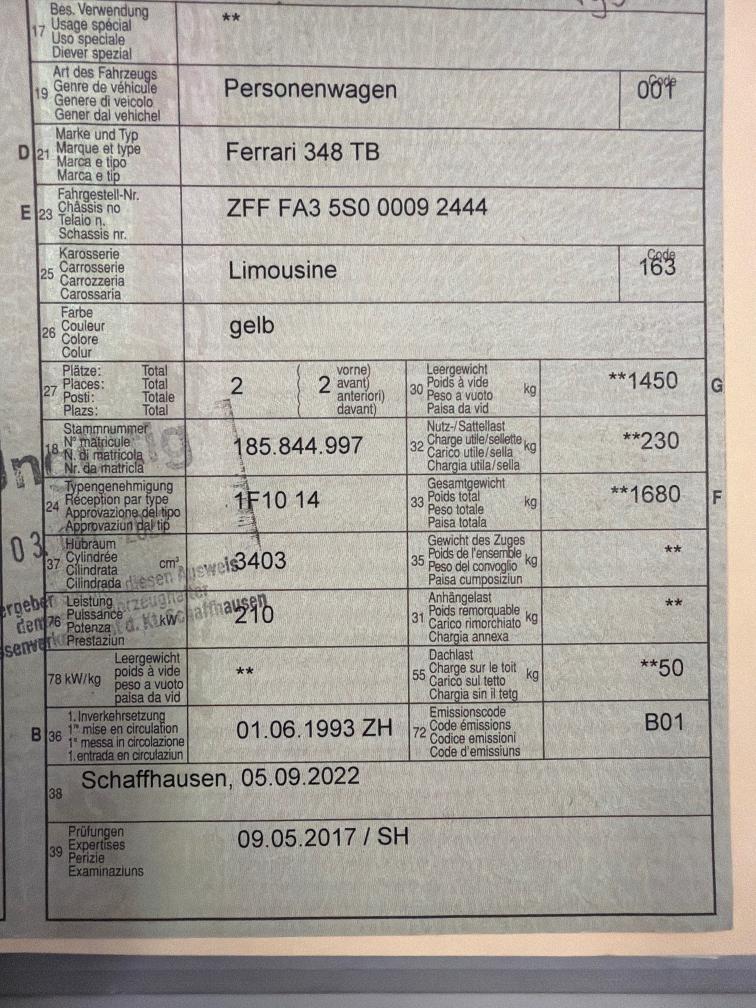 Wunderschöner 348TB , neue Pirelli Reifen , servicegepflegt aus langjährigem Besitz , Zahnriemen am 8.24 bei 57688km ersetzt, keine klebrigen Teile im Innenraum, original Verglasung rundum, inkl. Werkzeugtasche, Felgen neu aufbereitet, Sportauspuff , original Auspuff vorhanden und wird mitgegeben