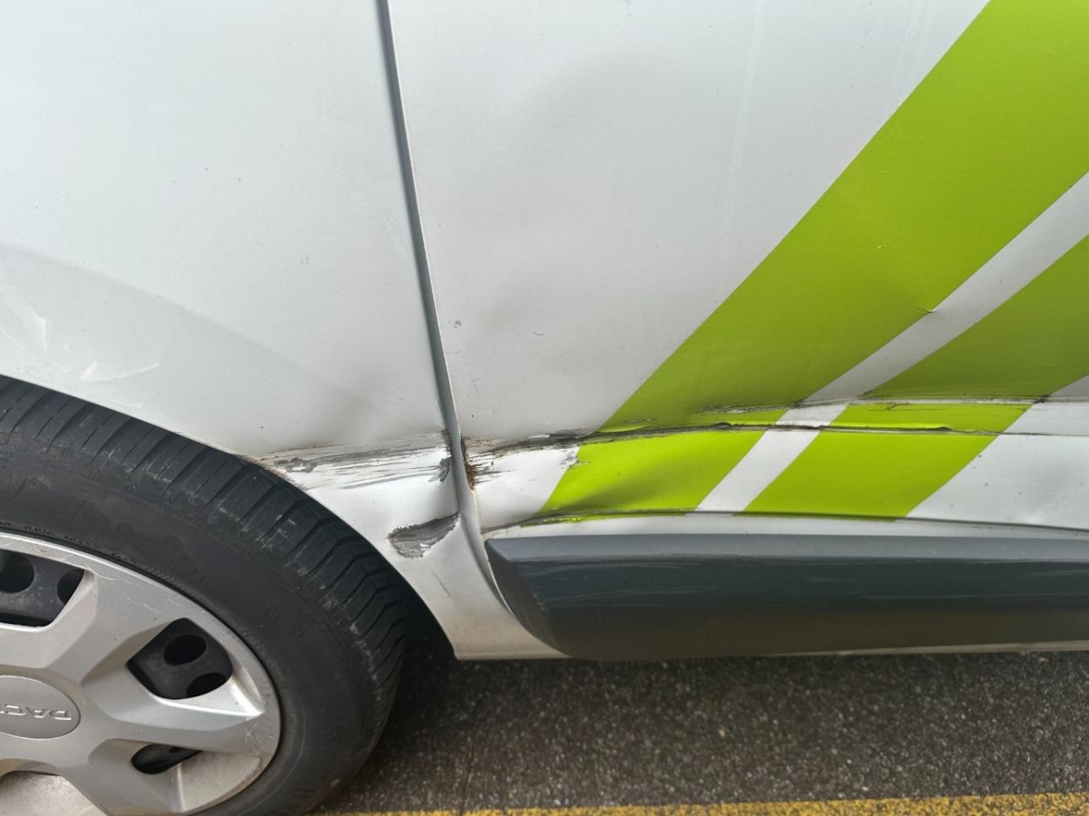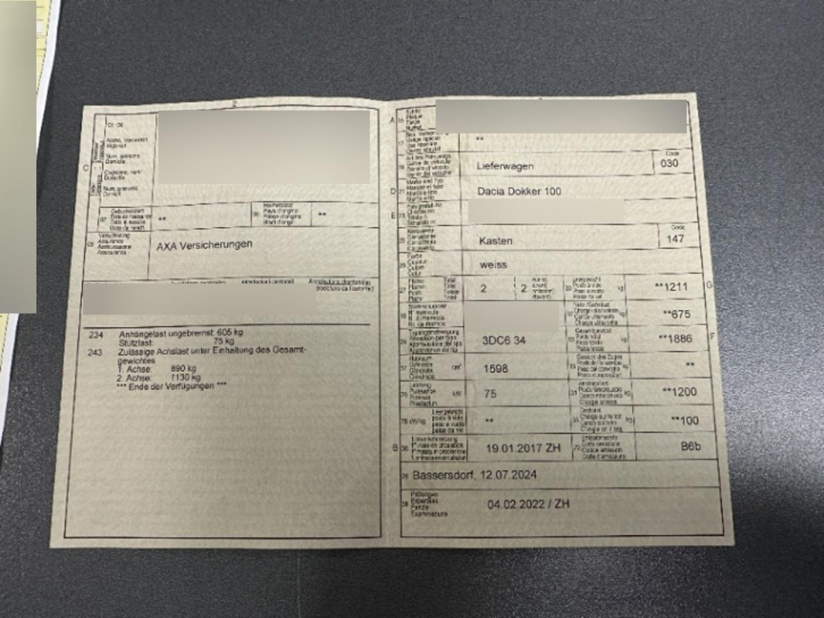 Das Fahrzeug hat rundum kleine Dellen, Beulen und Lackschäden, Diverse Gebrauchsspuren, Seitenwand rechts, Stosstange vorne, Türe hinten rechts